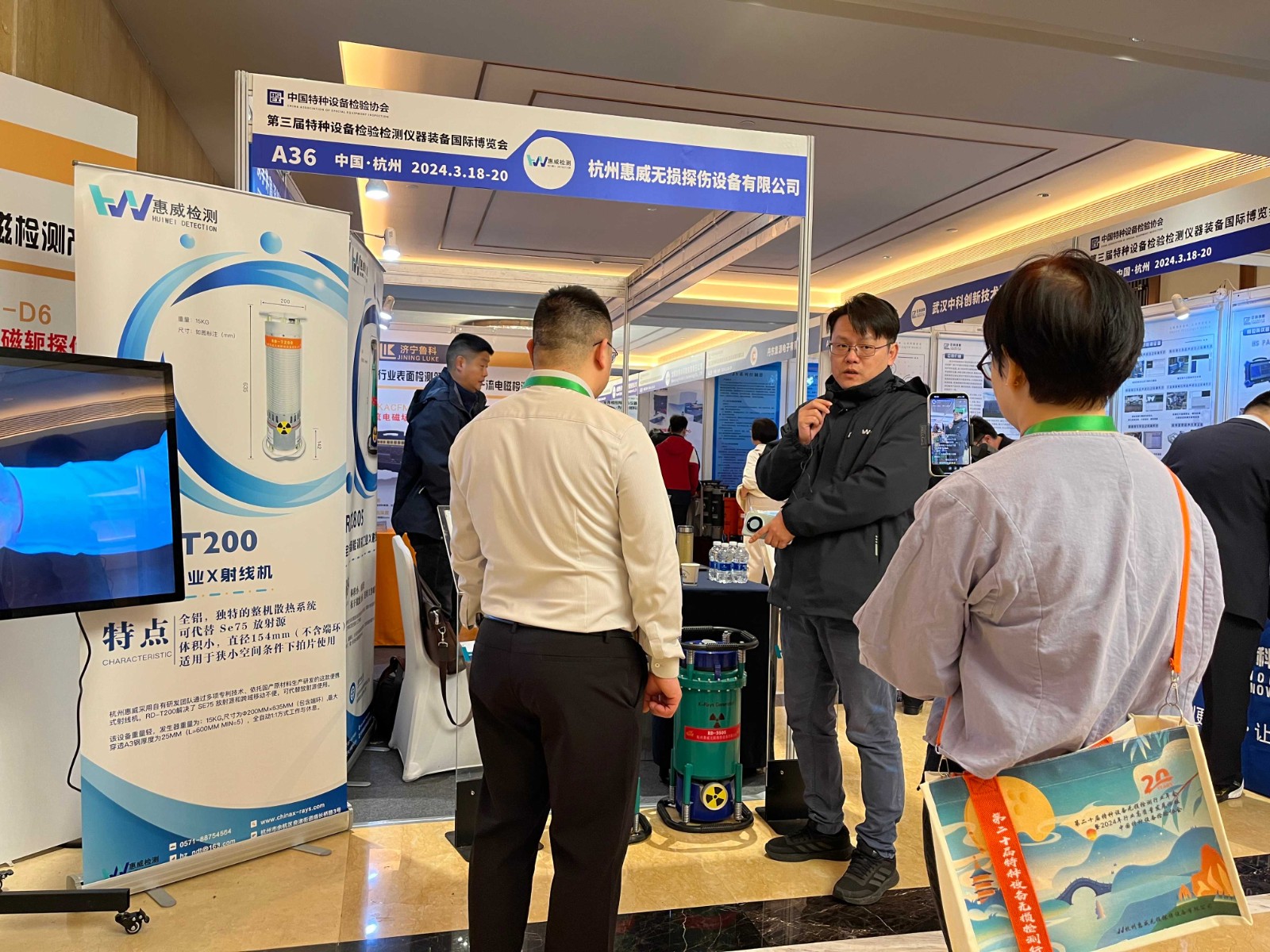本次年會與第三屆特種設(shè)備檢驗(yàn)檢測儀器裝備國際博覽會同期舉辦,博覽會規(guī)??涨?,80余家展商現(xiàn)場設(shè)展,杭州惠威在此次展會上展示了公司RD系列2805、3505、G300、360LG等各類便攜式工業(yè)X射線機(jī)。